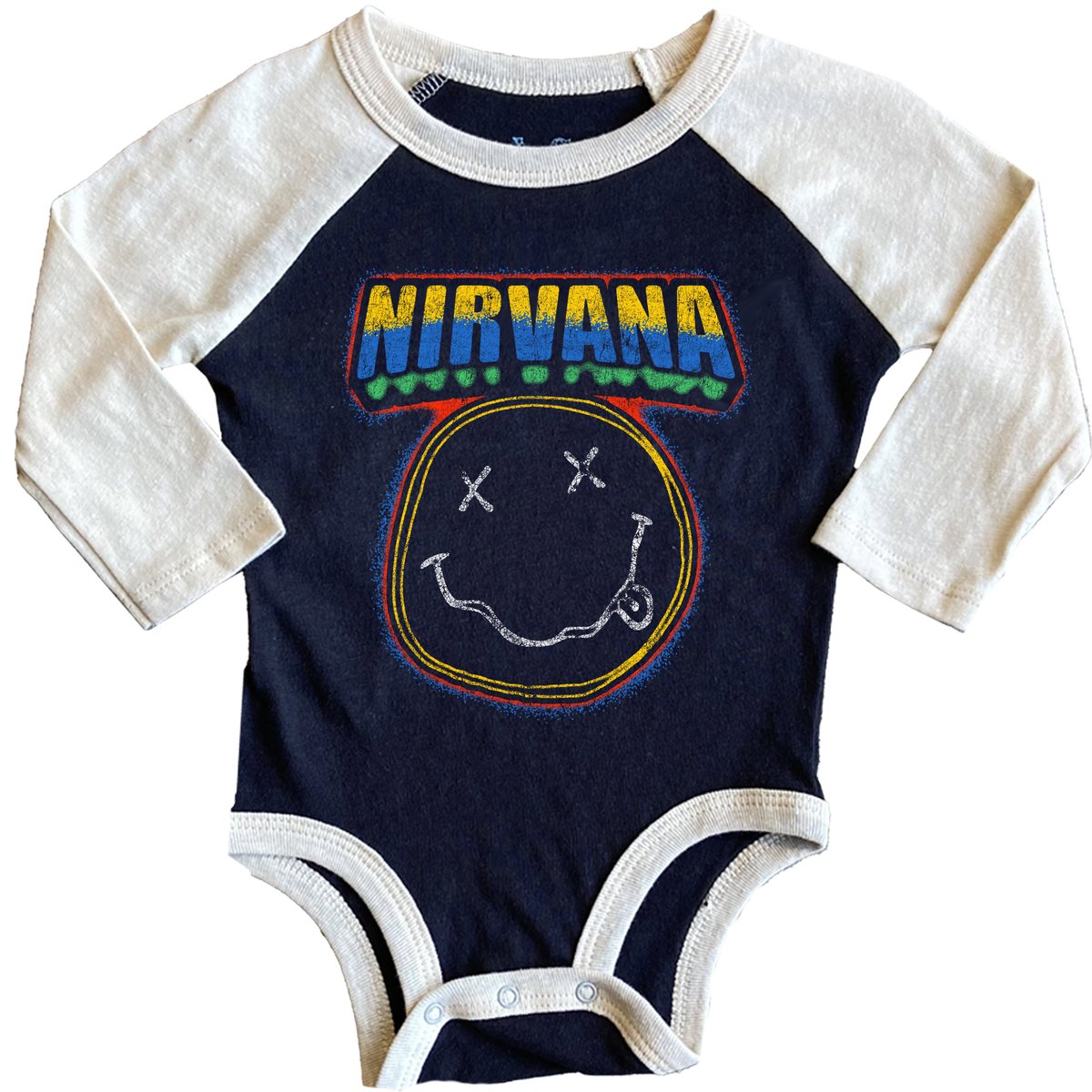 Rowdy Sprout Nirvana Smiley Raglan Onesie