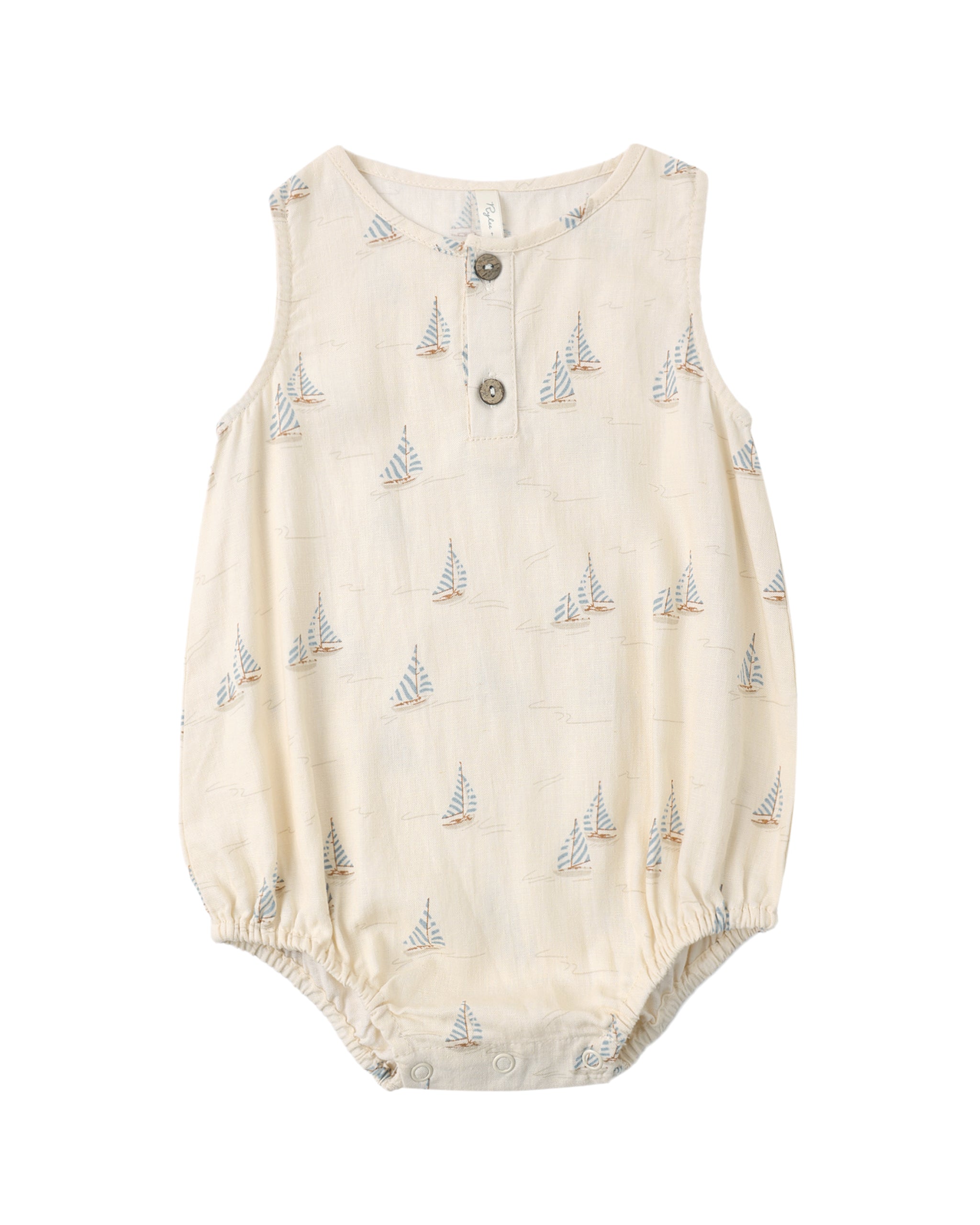 Our Beau Romper is the perfect summer outfit for your little one. This romper features a button placket on the chest and bottom snaps for easy changing.