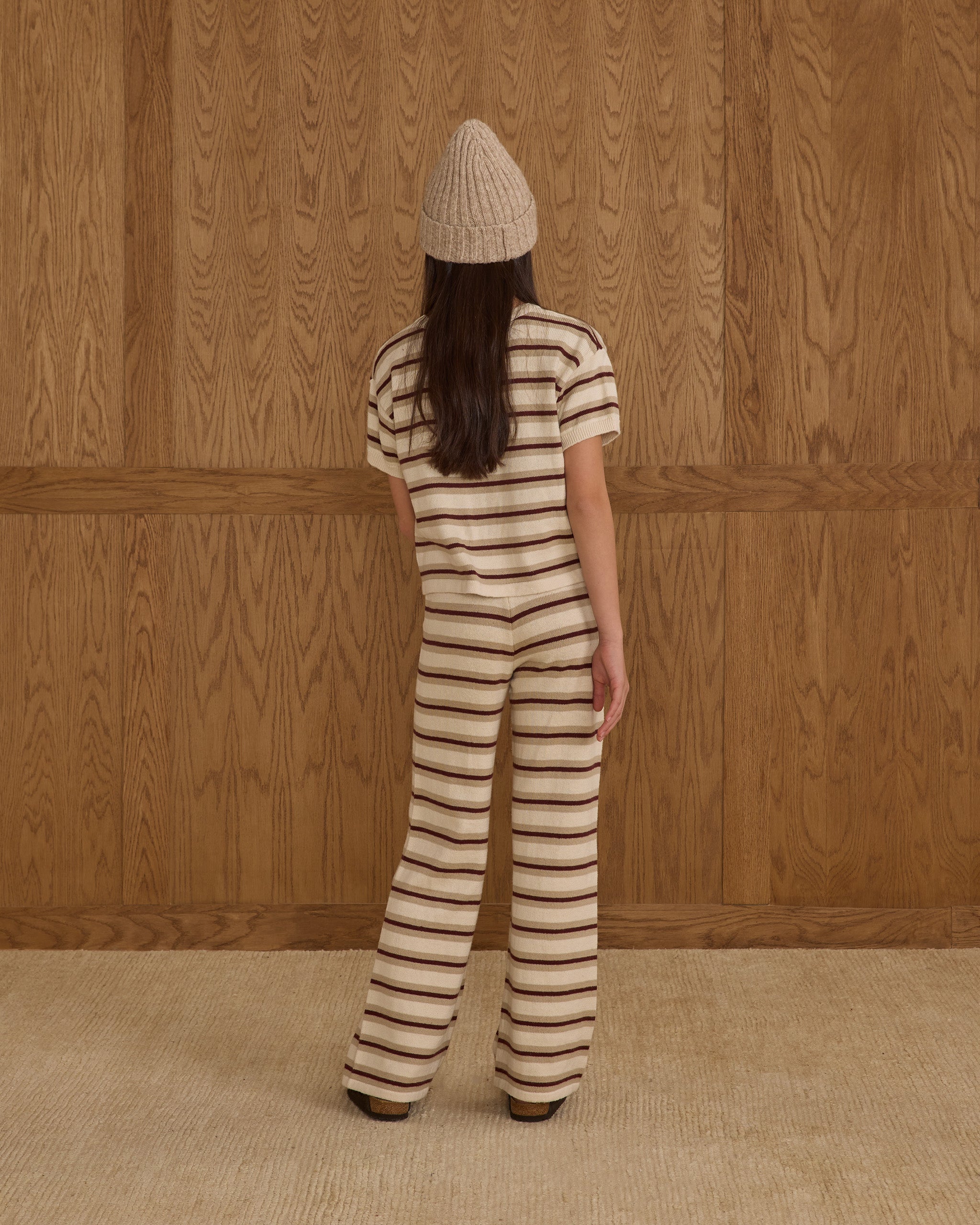 Rylee + Cru Knit Wide Leg Pant || Burgundy Stripe - Teen