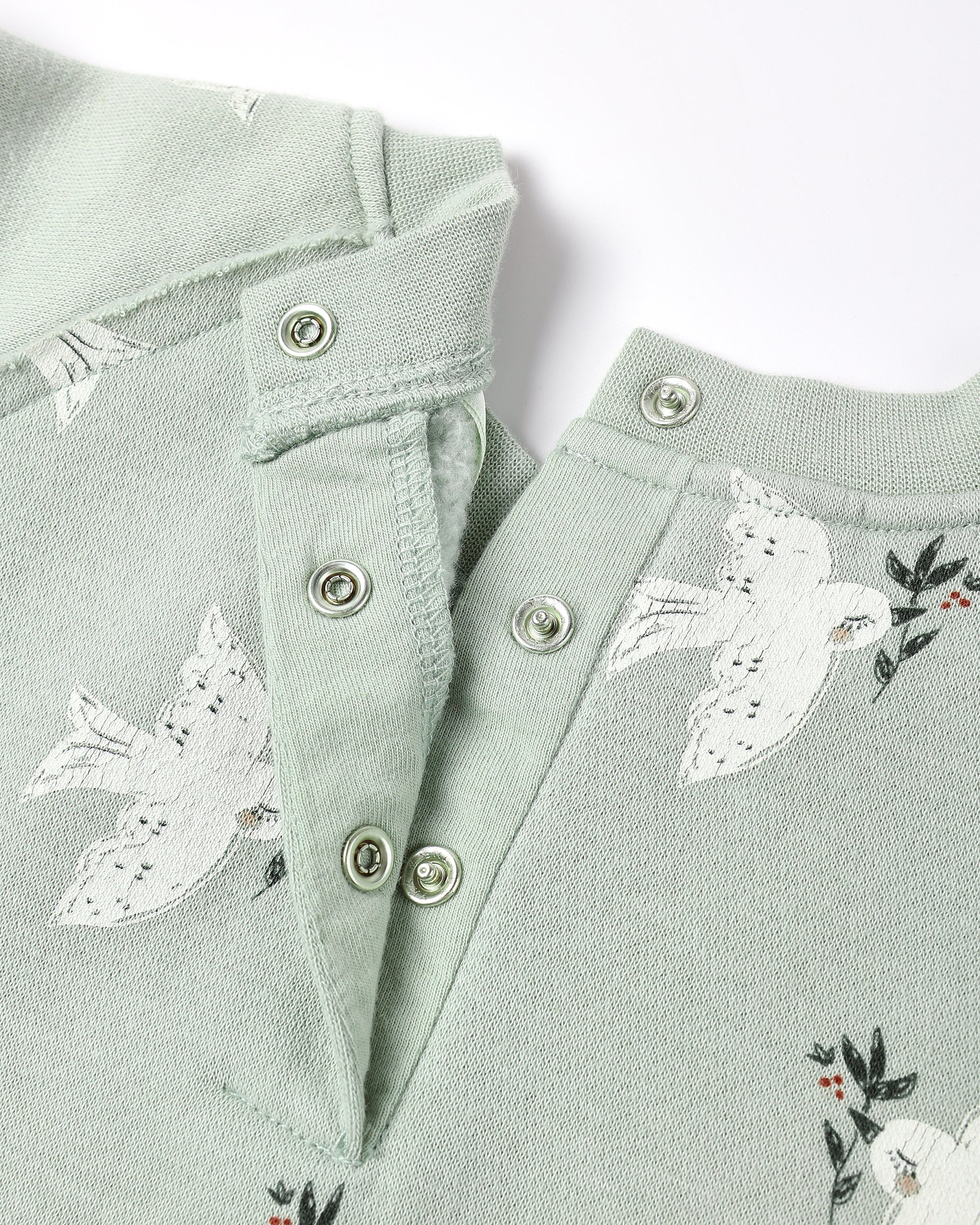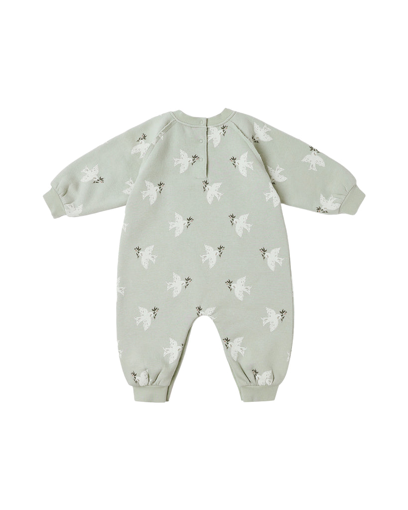 Longsleeve bubble romper made in the softest french terry fabric. Elastic leg openings, as well bottom snap closures, ensure easy changing.