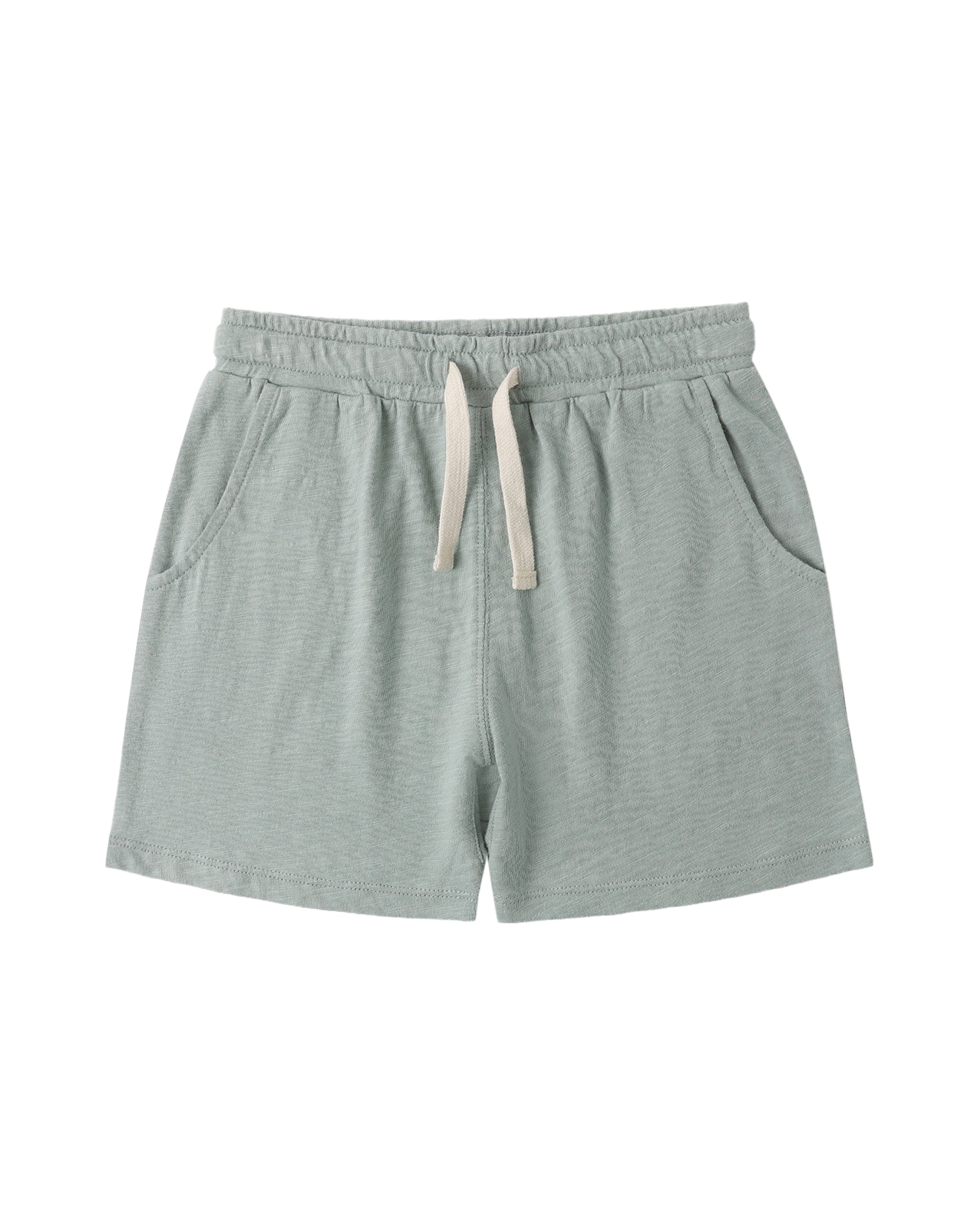 These cozy shorts feature side pockets, elastic waistband with faux drawstring.