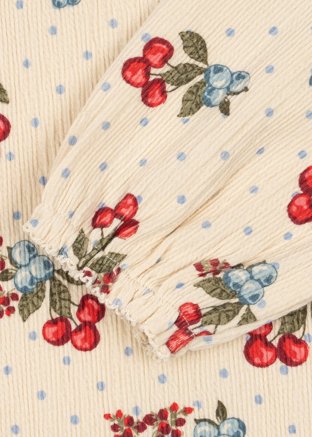 Soft cotton dress in a loose and comfortable silhouette. Designed with elastic cuffs and neckline. GOTS, Organic