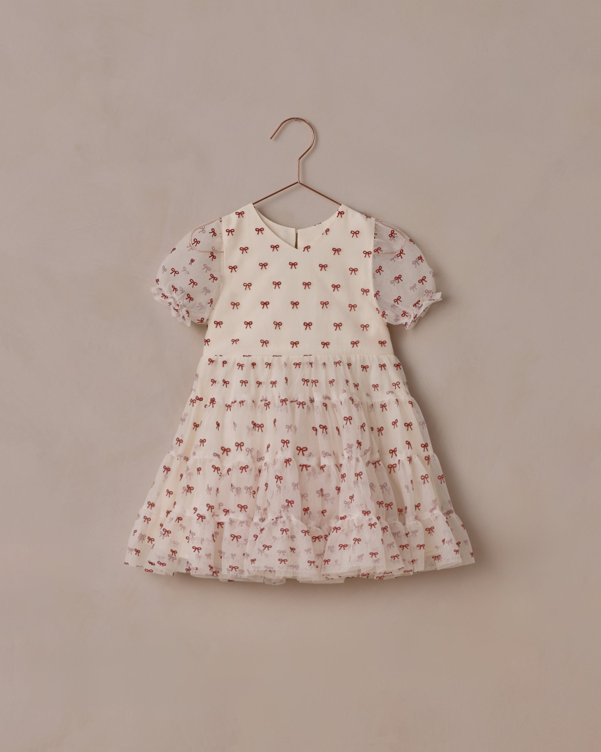 This dreamy midi-length dress is crafted from flocked dotted tulle and features a four-tiered skirt made for twirling, full puffed sleeves, and a delicate button-back closure. Coordinating bloomers included with size 2Y.
