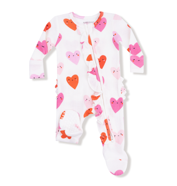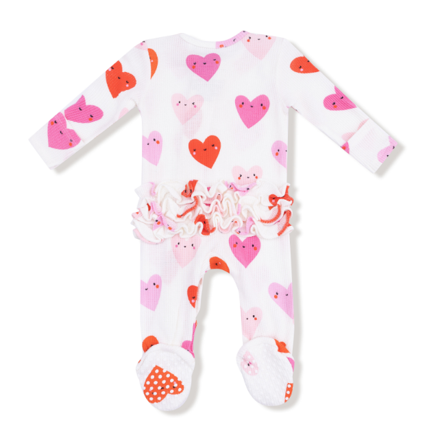 Angel Dear Happy Hearts - 2 Way Ruffle Zipper Footie - Waffle