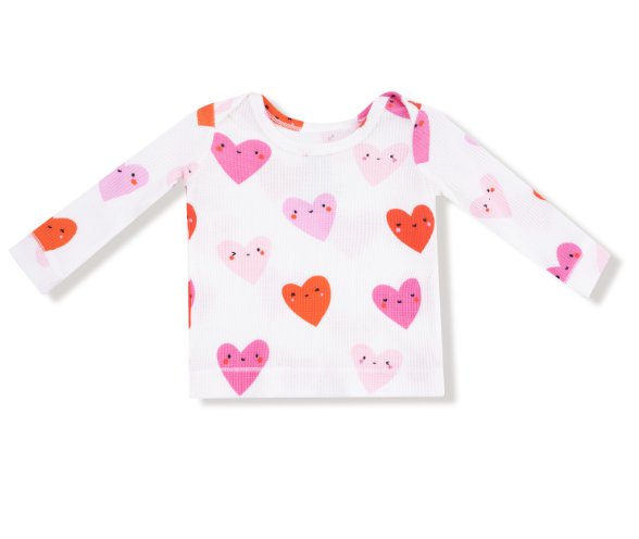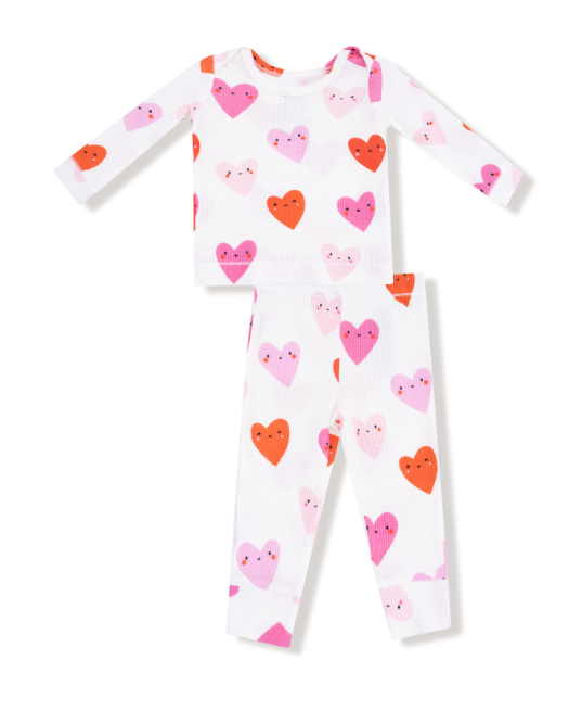 Angel Dear Happy Hearts Long Sleeve Loungewear Set - Waffle